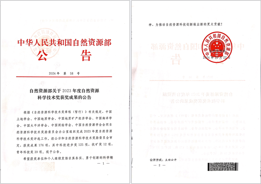 永利官网参与申报的科研项目斩获2023年度自然资源科技进步一等奖