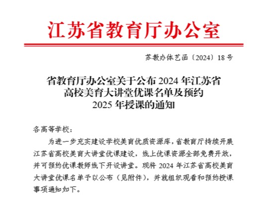 永利官网2门课程入选2024年江苏省高校美育大讲堂优课