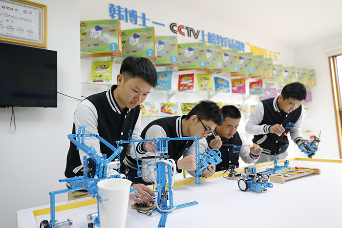 他们的奋斗精神和项目的社会价值也得到了中国工程院院士缪昌文教授的青睐,获得了缪院士主导的材智汇创孵公司的投资,双方合力打造了本文开头提到的“韩博士机器人创客中心”。在这个创客中心,团队首创的科技创新教育“三步成才法”得到具体落实,从兴趣培养到系统训练到项目实践,一应俱全。一进门,便能见到科普体验区、3D打印机、足球机器人、智能小车等等科技创新教具和玩具,别说小孩,连大人都被吸引了。创客中心试运行期间就得到了政府、媒体、学校、家长和孩子们的一致好评。