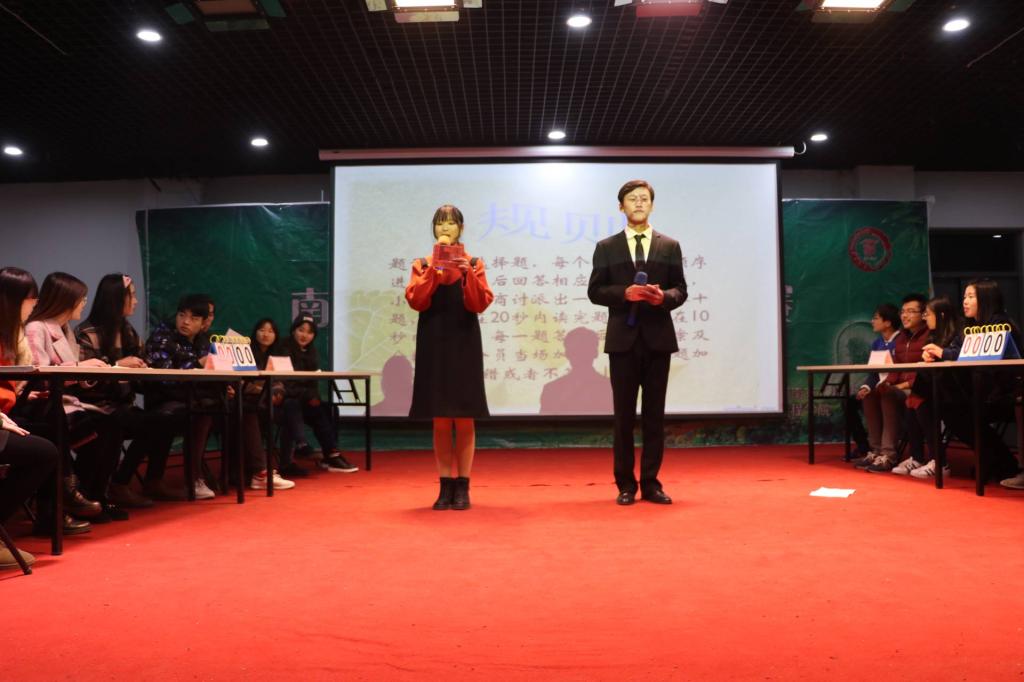 决赛共分为七大环节。依次为必答题,是非题,幸运题,风险题,互动题,兴趣题,记忆题,题目涉及水污染、大气污染、动物保护、法律基础、家居环境等15个领域。在场选手都拿出了自己的看家本领,分数不相上下。在不同知识领域题目出现时,各队派出对应的知识较熟悉的同学出场答题,通过分工,充分发挥了合作精神。场下观众都紧张不已,跟着选手认真做题。经过角逐,环境工程学院、艺术与设计学院获得一等奖、材料工程学院和通信工程学院分别获得二、三等奖。