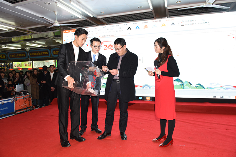 12月29日晚,永利官网“日新月异鸣鸡去·祥瑞南工迎旺来——2018迎新年游园会”活动在北区萃园一食堂如期举行。校党委书记史国君,副院长张仰飞,相关职能部门、各学院(中心)学生工作负责人及广大师生欢聚一堂,共同观看精彩的节目,参与欢乐有趣的游戏,喜迎2018的到来。