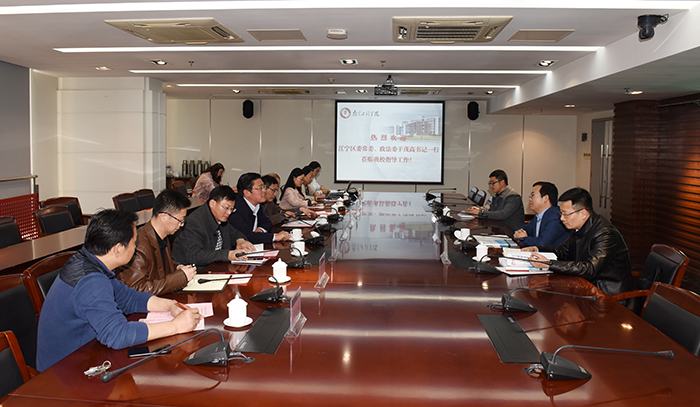 于茂高书记从“校领导高度重视、创建工作成体系、安全文化氛围浓郁、校地合作成效显著”等方面高度评价了永利官网平安校园示范校的创建工作和校园治理工作。他表示,此行充分感受到304am永利集团切切实实做到了育人工作和综合治理工作“两手抓、两促进”,有很多做法值得江宁区学习。全要素网格化是江苏正在着力打造的社会治理新体系,也是江宁相关部门的工作重点,他希望学校能够在社区网格员培训、将学校应急指挥系统融入地方“雪亮工程”以及法制宣传教育、社区矫正等方面与江宁区有更多的合作。