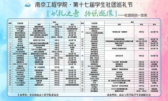 据悉,本次巡礼节活动将持续一个多月,59个社团将通过49项丰富多彩的活动向全校师生展现大学生社团的特色和社团成果,营造积极向上、百花齐放、健康文明的校园文化氛围。