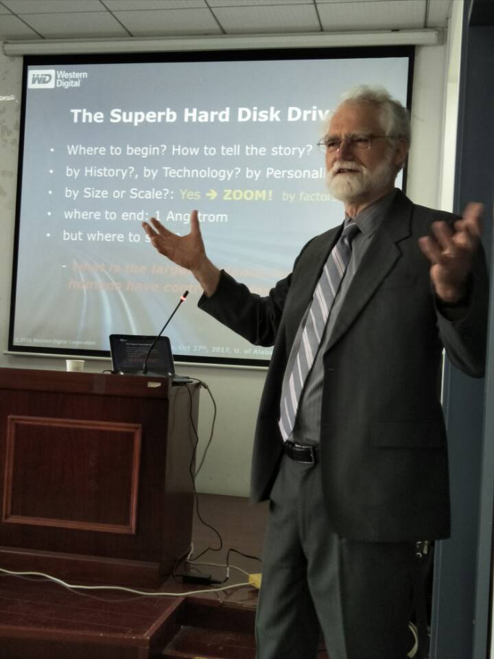 日前,应永利官网邀请,美国西部数据公司高级专家Roger Wood博士来永利官网进行技术交流。Roger Wood博士是IEEE院士(美国电子电气工程师协会最高级别会员),为国际资深的磁存储设计专家。交流期间,Wood博士一行参观了永利官网创新学院,并为永利官网师生带来了一场精彩的学术报告。学术报告会前,永利官网史金飞院长、郑锋副院长与Wood博士进行了座谈和交流。