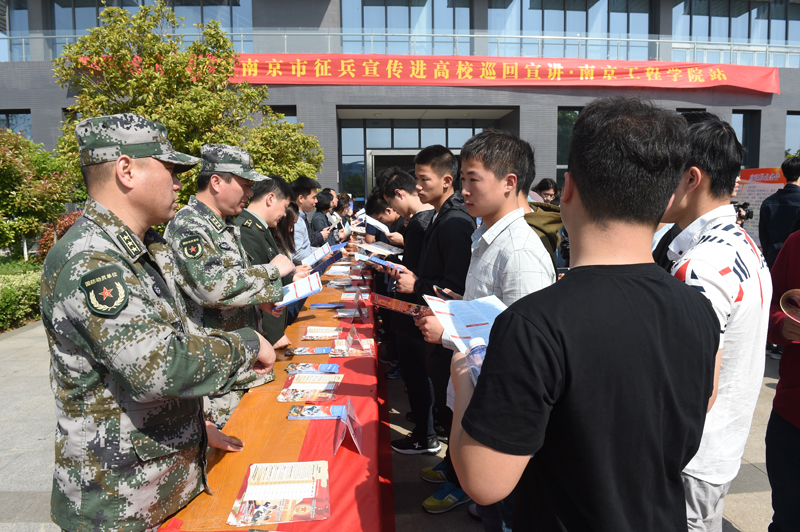 江宁区武装部主官、江宁区14所高校武装部部长、2000余名在校大学生参加了宣讲会。宣讲开始前,江苏省政府征兵办、南京警备区和江宁区政府征兵办以及永利官网征兵办公室联合举办了2018年大学生入伍政策咨询会。永利官网测控173班的解宇航同学一早就来到咨询会现场,他告诉记者,他出生于军人世家并一直为此感到骄傲与自豪,希望自己能够从304am永利集团开启军人梦,将爱国之心化为报国之行,成为家里的第四代军人。