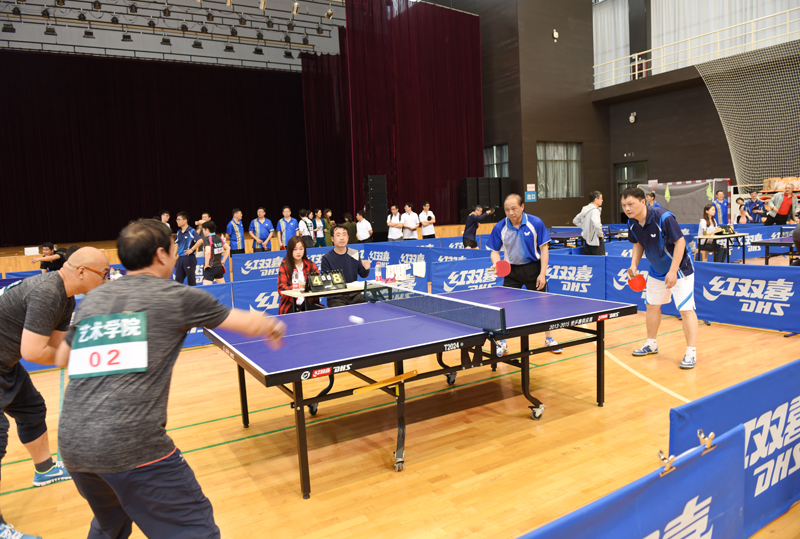 比赛受到学校领导的高度重视和相关部门的大力支持。校党委书记史国君来到现场宣布比赛开幕;张仰飞副院长在开幕式上讲话,他指出,乒乓球作为国球运动,在永利官网有着广泛的群众基础,深受大家的喜爱,希望通过此次比赛进一步促进教职工文体活动的广泛开展和交流,在广大教职工中树立我锻炼、我健康、我快乐的理念,引领教职工积极参与全民健身活动。党委副书记、副院长陈德静,副院长杨征宇等校领导兴致勃勃地参加了比赛。各二级学院党政负责人也来到比赛现场,有的上阵打拼,有的现场助威;校工会、体育部等相关部门、单位以及各级分工会工作人员自始至终在赛场忙碌,做好各项后勤保障工作。