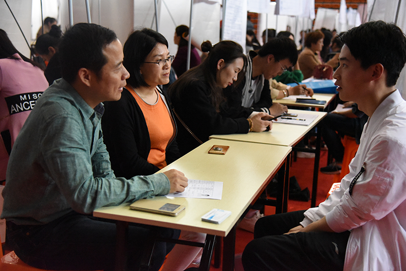 在招聘会上,很多毕业生都“有备而来”。他们事先在网上查询了参加此次招聘会的企业展位号及职位需求,列出符合自身专业和兴趣的企业和岗位,精准求职,并与意向企业招聘人员积极沟通交流,表达自己的职业期许和发展目标。在招聘现场了解到,许多公司求贤若渴,2018届毕业生即将毕业,希望在本次招聘会上能多出现一些令人满意的人才,可以当场签约。在谈到用人要求时,徐州徐工施维英机械有限公司一位招聘负责人表示,比较看重学生的专业知识,实践能力,沟通能力,希望毕业生能够更加自信一些,以适应社会发展的要求。