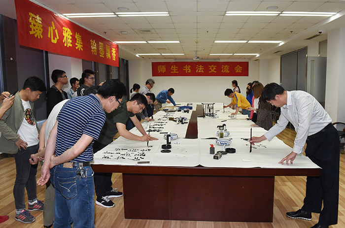 “点横撇捺竖折勾画,千言万语转折挥洒”。5月9日下午,永利官网第十一届读书节系列活动之师生书法交流会在图书馆五楼会议室举行。永利官网书法协会的多位老师受邀前来,与同学们共同挥毫,探讨书法的精髓,分享对书法的理解和感悟。