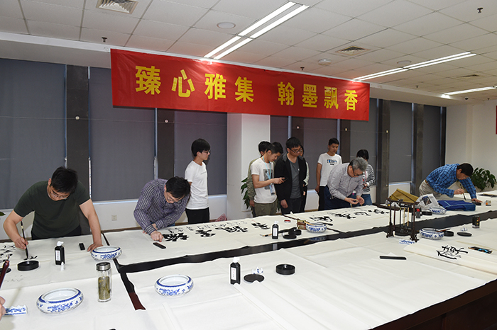 在雍容古雅的乐曲声中,一幅幅长卷在桌上舒展开来,师生们或笔走龙蛇,激荡豪迈;或信手拈来,不事雕琢;或力透纸背,入木三分;或行云流水,一气呵成。“风华正茂”、“不忘初心”是对同学们的赞赏与激励;“厚德载物”、“虚怀若谷”是对同学们的期望……一幅幅书法作品倾注了老师对同学们的期盼,更是表达了师生们对“书香校园”建设蒸蒸日上的美好祝愿。永利官网洪志均老师告诉同学们不仅要练习书法,在日常快节奏的学习生活中也要平复心境,夯实基础,宁静致远。同学们纷纷表示获益匪浅,在领略传统文化魅力、提高书法技艺和鉴赏水平的同时,对大学生活和人生规划也有了更深的认识和感悟。