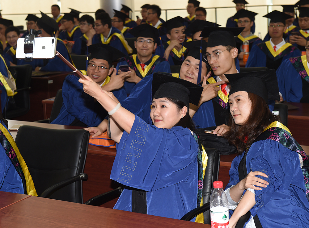 杨征宇副院长宣读校学位委员会决议之后,与会校领导为2018届硕士学位获得者颁发硕士学位证书,并一一为他们拔流苏,合影留念,参加典礼的师生和家长们纷纷举起相机、手机,拍下这激动人心的时刻。