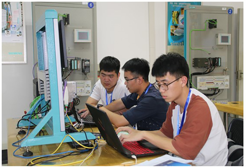 在为期三天的比赛中,各支队伍分为逻辑控制设计开发和运动系统设计开发两个赛项展开角逐。从企业角度“出题”,题目均来自企业工厂的真实研发项目,涵盖了工厂全生命周期过程各个环节,涉及智能软硬件工具开发、离散工业与流程工业工厂自动化控制,智能网络技术等内容。