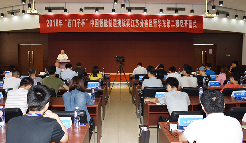 江苏省教育厅高教处副处长徐庆,教育部高等学校自动化类专业教学指导委员会副主任、国家级教学名师、南京理工大学吴晓蓓教授、2018年“西门子杯”中国智能制造挑战赛组委会秘书长、西门子技术专家、北京化工大学张贝克教授,永利官网副院长郑锋以及永利官网工业中心、教务处负责人等出席了24日上午举办的大赛开幕式。