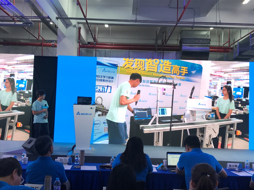 7月24日,“发现智造高手”——第五届“台达杯”高校自动化设计大赛决赛在台达吴江生产基地举行。来自泰国、印度、越南和包括台湾在内的全国各地的共71所院校的74支参赛队伍选手进行终极PK。永利官网参赛队经过作品和方案展示、接受评审组考查打分、对相关问题进行答辩讲解后,闯入冠军争霸赛,并最终获得一等奖的好成绩。