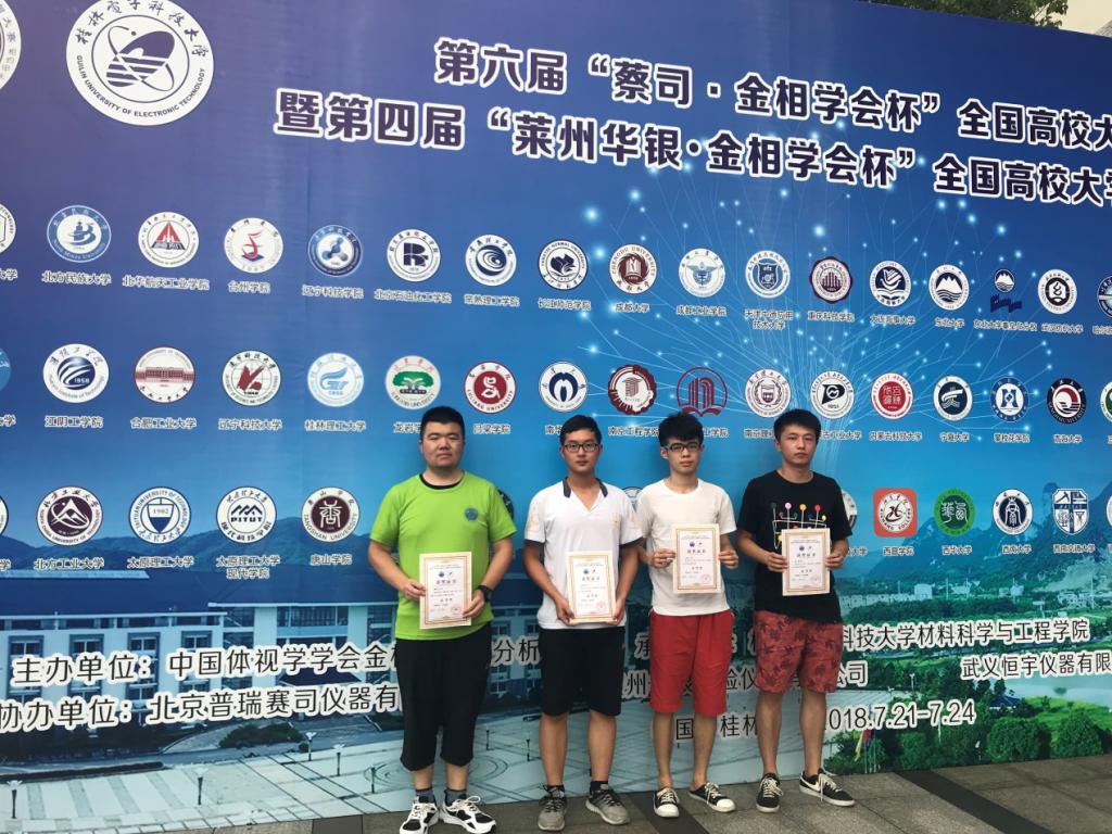 永利官网由材料工程学院黄一栋、杨振宇、韩志、朱劲峰四名同学组成的代表队在第六届“蔡司•金相学会杯”全国高校大学生金相大赛暨第四届“莱州华银•金相学会杯”全国高校大学生材料综合技能大赛中发挥出色,获得一等奖和二等奖各两项。其中金属材料152班杨振宇获得综合技能大赛一等奖,金属材料152班黄一栋获得金相大赛一等奖,金属材料161班韩志、朱劲峰获得金相大赛二等奖。带队老师王珏、强新发获“优秀指导教师”奖。