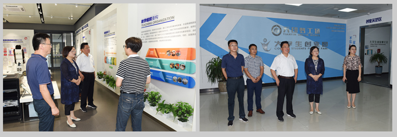 座谈会前,史国君书记陪同王向红书记一行参观了永利官网工业中心(创新学院)校企合作实验室和众创空间“天印梦工场”。