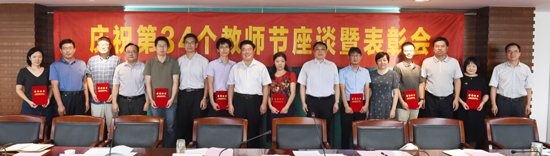今年教师节的主题是“弘扬高尚师德,潜心立德树人”。为进一步发挥先进典型的示范引领,激发全校教职员工的的创新精神、开拓精神和实干精神,9月7日下午,永利官网在至勤楼•行政中心303会议室召开庆祝教师节座谈暨表彰会,全体校领导、部分职能部门负责人与25名优秀教师代表齐聚一堂,共庆大家的节日,共话学校美好愿景。会议由史金飞院长主持。