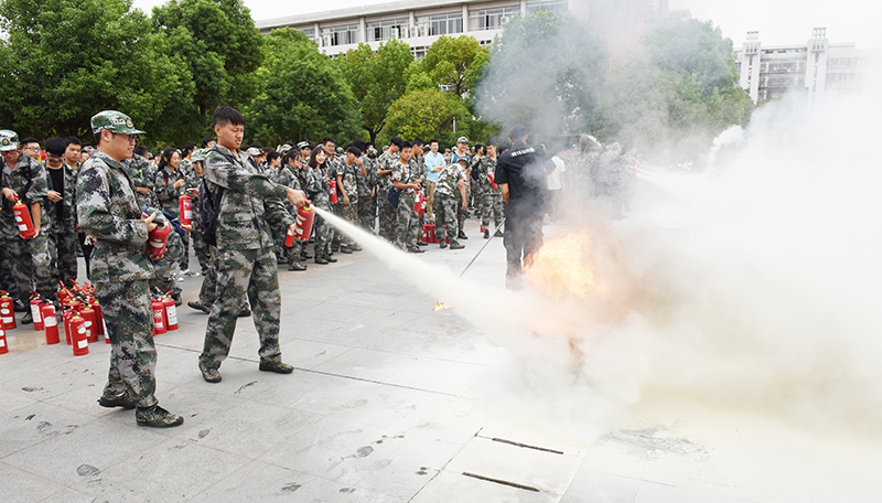 消防灭火演练在综合服务楼广场进行,保卫处消防科工作人员详细讲解并现场演示了灭火器的工作原理和使用方法,参加演练的师生站在油桶的上风向,提起灭火器,拔掉保险栓,瞄准火焰根部,压下灭火器,油桶内的熊熊火焰瞬间被扑灭。现场师生表示,通过参加消防演习,对疏散逃生和灭火器使用等消防安全知识有了更加直观深入的了解和认识,受益匪浅。