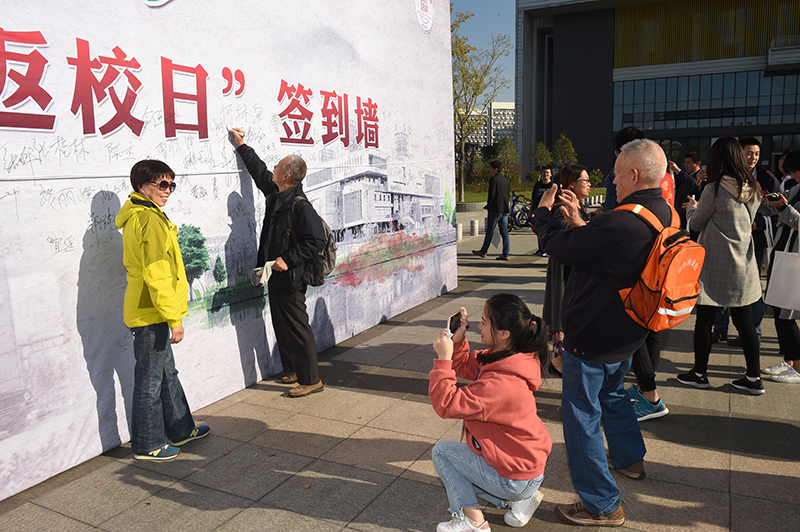 返校日活动当天,学校还举办了黄健校友书画展、学校改革发展成果展、摄影绘画作品展、校园生态环境展等一系列展览,推出了小公交校园游、学位服留影等活动,为校友们准备了精美的校徽和“怀旧午餐”,策划了校友树认养和图书认捐活动,得到了校友们积极响应和大力支持。校园里,学生社团的露天才艺表演、“欢迎回家”巨幅海报、签名墙,和着校友们灿烂的笑容,构成了一幅美好而温馨的画面。