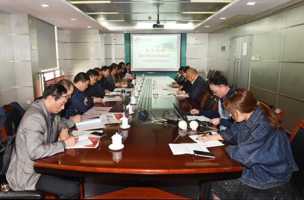 11月5日,衢州学院副院长吾国强率教务处以及各学院主要负责人来永利官网调研。永利官网党委副书记、副院长曹雪虹接待了来宾。