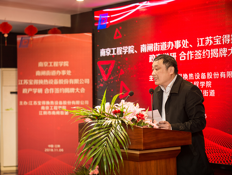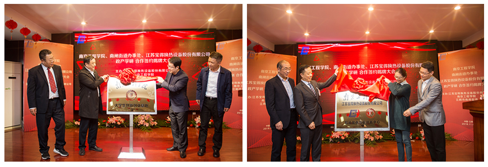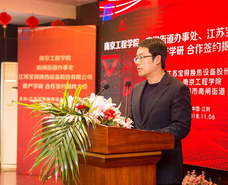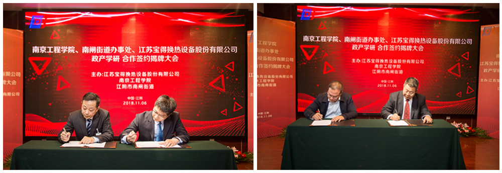 11月6日上午,永利官网与江阴市南闸街道、江苏宝得换热设备股份有限公司政产学研合作签约揭牌仪式在宝得公司举行。