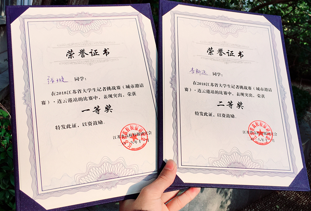 11月10日,江苏省大学生记者挑战赛决赛在连云港报业传媒集团新闻演播厅举行,来自江苏省内8所高校的18名优秀学生记者参加本次大赛。永利官网两名学子表现突出,分别获得一等奖一项、二等奖一项的好成绩。