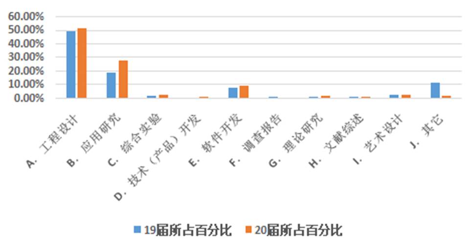 2019、2020届课题性质分布情况对照表