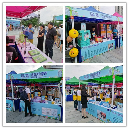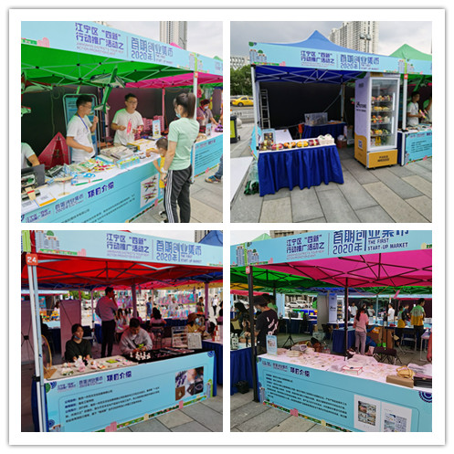 6月19日下午,由江宁区“四新”行动指挥部办公室指导、江宁区人社局主办、江宁区创业服务协会承办的江宁区2020年首期创业集市在景枫KINGMO广场举办,永利官网大学生创业园“天印梦工场”驻园和孵化出园的10家创业公司和团队积极参与,成为活动的主力。
