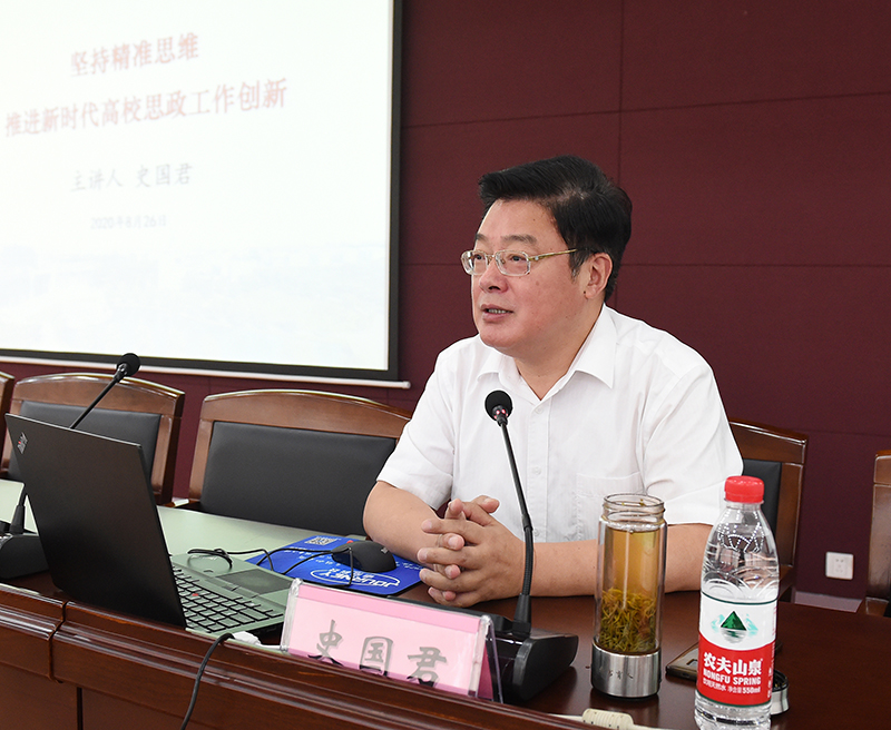 研讨会上,全体与会人员认真聆听了校党委书记史国君所作的《坚持精准思维,推进新时代高校思政工作创新》专题报告。史书记从立德树人的视角阐释了精准思政提出的背景、内涵及意义。他强调,我们要树立精准思政的新理念,筑牢精准思政的实践基础,构建精准思政的组织协同机制。会上,史书记鼓励广大辅导员争做思想政治引领的排头兵、师德师风建设的捍卫者、思政理论创新的探索者、学校事业发展的先锋队、学生成长成才的摆渡人。