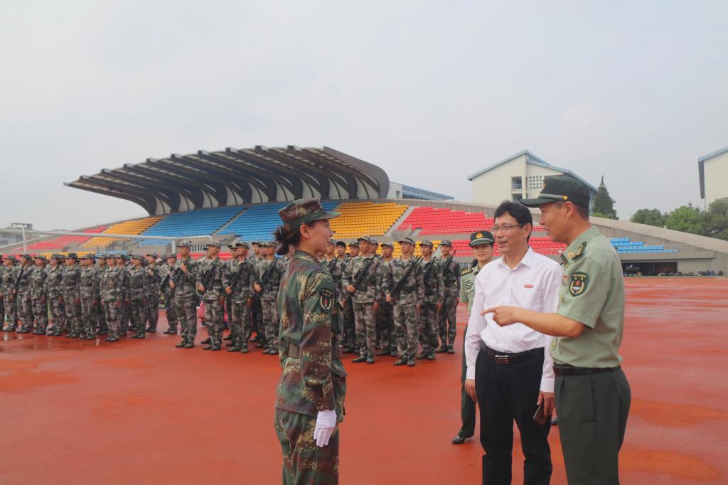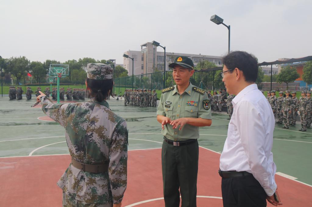 张仰飞副院长和朱剑锋副院长首先来到北区场地。在查看棍术、队列方阵等训练科目后,详细询问了军训进度和教官生活保障情况。棍术方阵负责人任毅教官表示,学生训练时高度配合,积极主动,还出现了自己要求加训的同学。虽然大多教官嗓音已经沙哑,每日行进步数不下三万步,但是校方一直积极配合,做好了所有后勤服务工作,今年的住宿条件更是让她们有了一种回到家一般的温暖。张仰飞副院长在与军训教官的交流中充分肯定了军训团在军事技能训练方面取得的阶段性成果,要求教官们将军人的优良作风传递给学生,通过军训活动磨练新生的意志,为全体新生的大学生涯开好头、起好步。