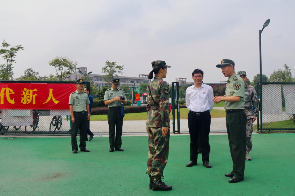 9月23日,永利官网党委常委、副院长张仰飞和中国人民解放军陆军工程大学通信工程学院朱剑锋副院长来到2020级新生军训现场指导工作。两位领导对永利官网军训工作给予了充分肯定,并代表学校向承训教官、连队指导员表示感谢。随行的还有四大队刘钢大队长、四大队赵学敏政委、教务参谋刘杰和军训团教导员王晨庆。