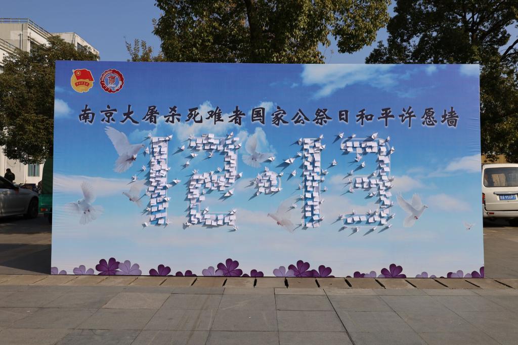 在至馨苑•综合服务楼广场,校团委组织开展国家公祭日“和平许愿墙”签名悼念活动。“铭记历史,自强不息”“愿世界和平”“吾辈自强”……在南京大屠杀死难者国家公祭日“和平许愿墙”前,过往师生纷纷驻足,在留言便签上和横幅上写下了对死难同胞的缅怀,对保卫和平的坚定信念。纸鹤传情,悼念三十万遇难同胞;字词铿锵,书写十四亿和平心愿。