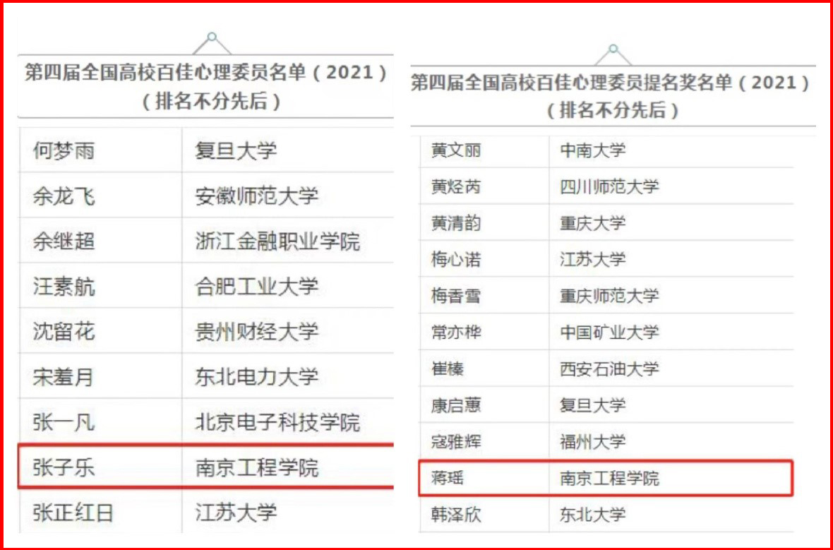 会上公布并表彰了第四届“全国百佳心理委员”和“全国百佳心理委员提名奖”获得者名单。永利官网学子在此次评比中喜获佳绩,经济与管理学院张子乐同学荣获“全国百佳心理委员”荣誉称号,材料科学与工程学院蒋瑶同学获评“全国百佳心理委员提名奖”。