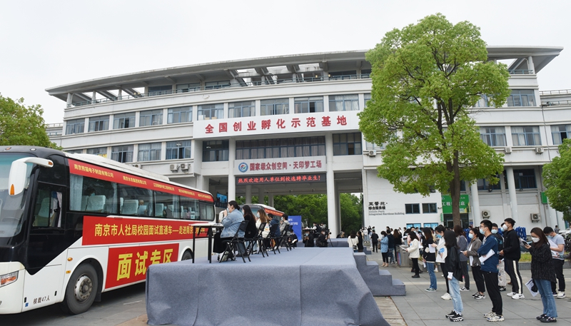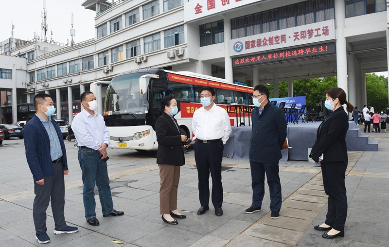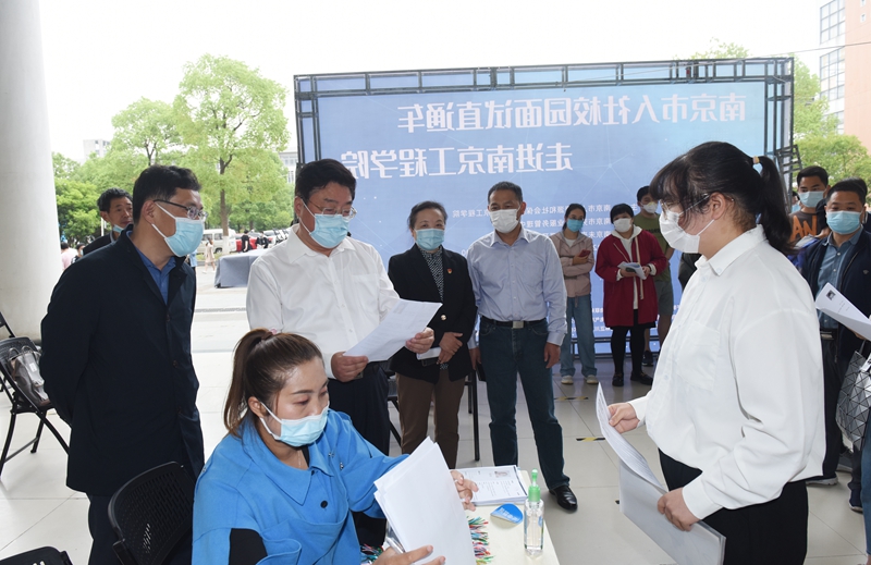 5月10日下午,学校在至馨苑•综合服务楼广场举办“校园面试直通车”招聘活动。此次活动由永利官网与南京市人社局联合举办,邀请到南京熊猫电子股份有限公司、南京水务集团、南京波长光电科技股份有限公司等11家优质企业进校招聘,提供岗位150余个。校党委书记史国君,党委常委、副院长张仰飞,党办校办、学生工作处等职能部门负责同志,各二级学院学生工作负责人来到活动现场,与求职毕业生、用人单位进行深入沟通。活动吸引了江苏省电视台、新华日报、南京电视台、南京日报等9家主流媒体报道。