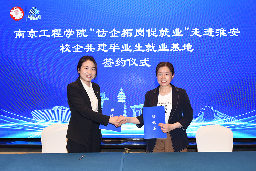 活动中,校学生工作处负责人与淮安威灵电机制造有限公司、卧龙电气淮安清江电机有限公司签订共建毕业生就业基地协议。