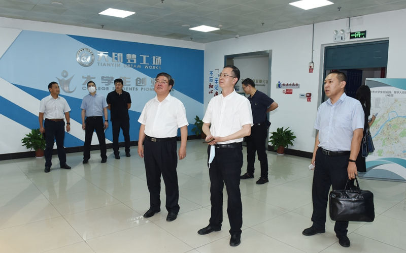 会前,调研组一行参观了大学生创业园“天印梦工场”。史国君书记介绍了永利官网近年来的学生创新创业工作,史书记表示,永利官网十分注重在校学生的创新创业能力培养,将创新创业教育融入人才培养全过程,使学生不出校门就能进行创业训练,走出宿舍即能体验创新精彩。通过十余年的教育与实践,构建了“创新推动创业,创业激励创新”的良性互动机制,营造了“生师互融共创,学生抱团发展”的浓郁创新创业氛围。