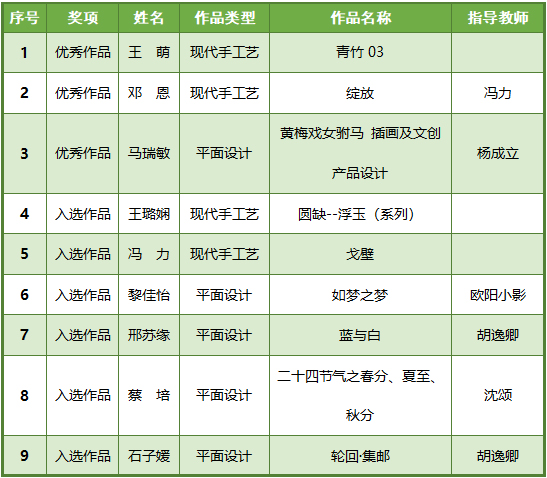 近日,永利官网艺术与设计学院王萌、王璐娴、冯力等3位教师,邓恩、马瑞敏、黎佳怡、邢苏缘、蔡培、石子媛等6位学生作品亮相“融通并茂”第五届江苏省高校设计作品展,其中,3件作品被评为优秀作品,学校荣获优秀组织奖。