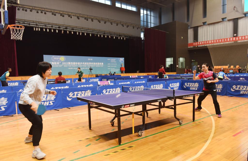 11月26日至27日,“海联杯”2022第四届砂板乒乓球世界杯高校团体赛在学校体育中心主馆正式开赛。此次赛事由江苏省海外联谊会、江苏省体育总会、江苏省友协共同主办,来自15所高校的近50名运动员组队参赛,其中包括19名外籍选手。