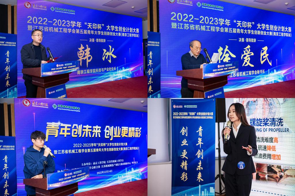 12月14日,永利官网2022/2023学年“天印杯”大学生创业计划大赛暨江苏省机械工程学会第五届青年大学生创新创业大赛决赛在大学生创业园“天印梦工场”项目路演厅举行。江苏省机械工程学会秘书长徐爱民,特邀评委南京农业大学大学生就业创业导师、名誉教授史炜俊,永利官网党办校办、科技与产业处、学生工作处、团委相关负责人,各参赛团队、各二级学院(中心)师生代表通过线下与线上相结合的方式共同参加了活动。