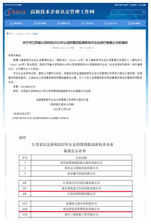 日前,国家科技部火炬高技术产业开发中心对江苏省认定机构2022年认定的第四批7971家高新技术企业进行了备案公示,永利官网大学生创业园“天印梦工场”在孵企业:南京果食盒子信息科技有限公司(企业负责人:朱国亮)和南京舒适家智慧家居有限公司(企业负责人:朱国亮)榜上有名。至此,永利官网大学生创业园“天印梦工场”累计成功孵化高企数量已达9家,同时也实现了同一企业负责人同时获批两家高企的突破。
