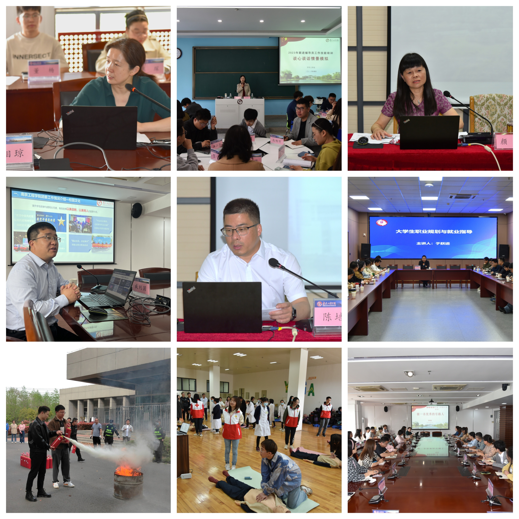 据介绍,此次新入职辅导员培训为期20天,共开展了24个专题共计42个学时的培训,内容包括理论宣讲、情景模拟、经验交流、案例研讨、消防演练、应急救护、心得撰写等24个专题。校党委书记史国君,校党委常委、副院长张仰飞走进培训现场,为辅导员作思政专题报告与工作指导。培训还邀请了校内外专家、学校职能部门负责人、全国“十佳标兵”高校辅导员、市红十字会专家、区消防大队教导员等主讲嘉宾,就学生工作的重点、难点,开展工作的方法、路径与辅导员们展开深入交流,多角度、全方位提升永利官网辅导员综合素质能力。