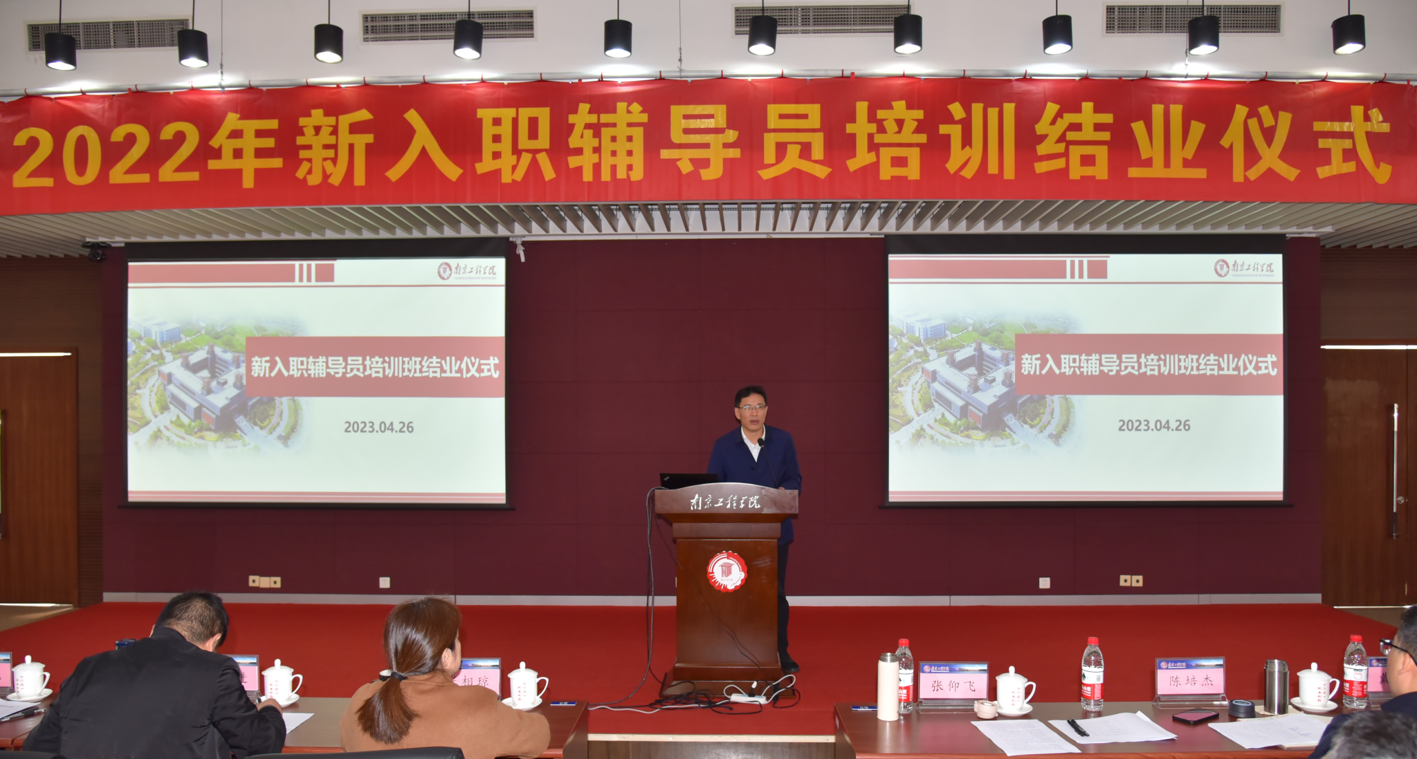 4月26日上午,永利官网2022年新入职辅导员培训汇报交流会暨结业仪式在至勤楼·行政北楼二楼多功能厅举行,校党委常委、副院长张仰飞,学工处、团委相关部门负责人,2022年度新入职辅导员参加了此次结业仪式。
