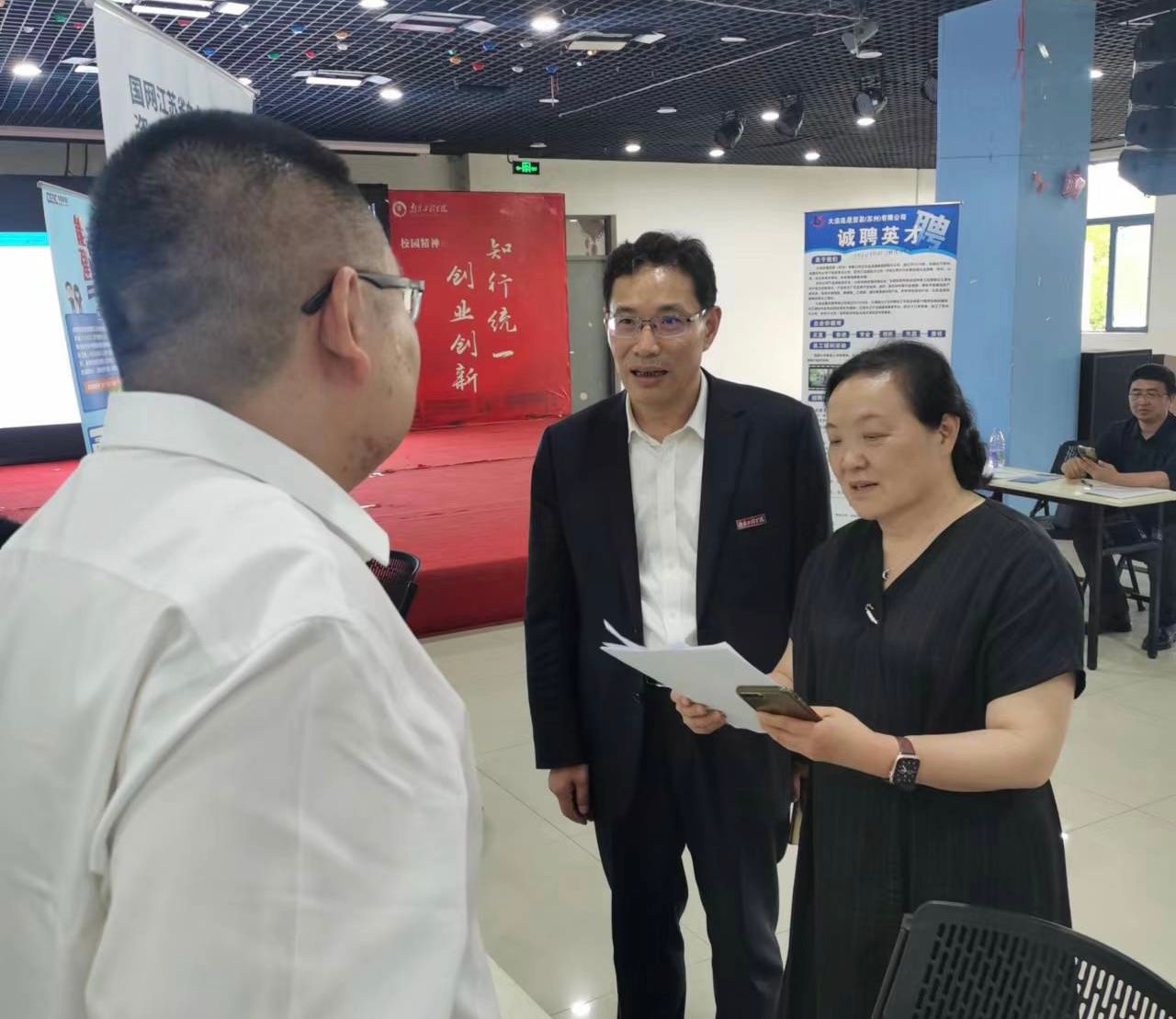 开营仪式结束后,张仰飞副院长和韩小燕主任来到毕业生专场招聘会现场,他们与用人单位代表亲切交流,并指导毕业生求职。本次招聘会共邀请到中国能源建设集团、航天锂电科技(江苏)有限公司、开沃新能源汽车集团股份有限公司、南京中船绿洲机器有限公司等105家优质单位,提供岗位1200余个。