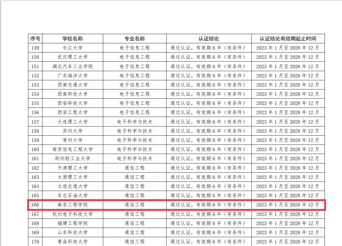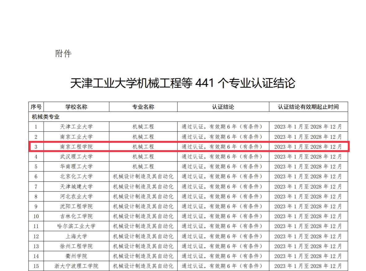 6月27日,中国工程教育专业认证协会、教育部教育质量评估中心发布《关于公布天津工业大学机械工程等441个专业认证结论的通知》,对2022年参加全国工程教育专业认证的认证结论进行公示,永利官网机械工程、通信工程两个专业顺利通过工程教育专业认证,有效期六年(2023年1月至2028年12月)。截止目前,永利官网已有8个专业通过工程教育专业认证。