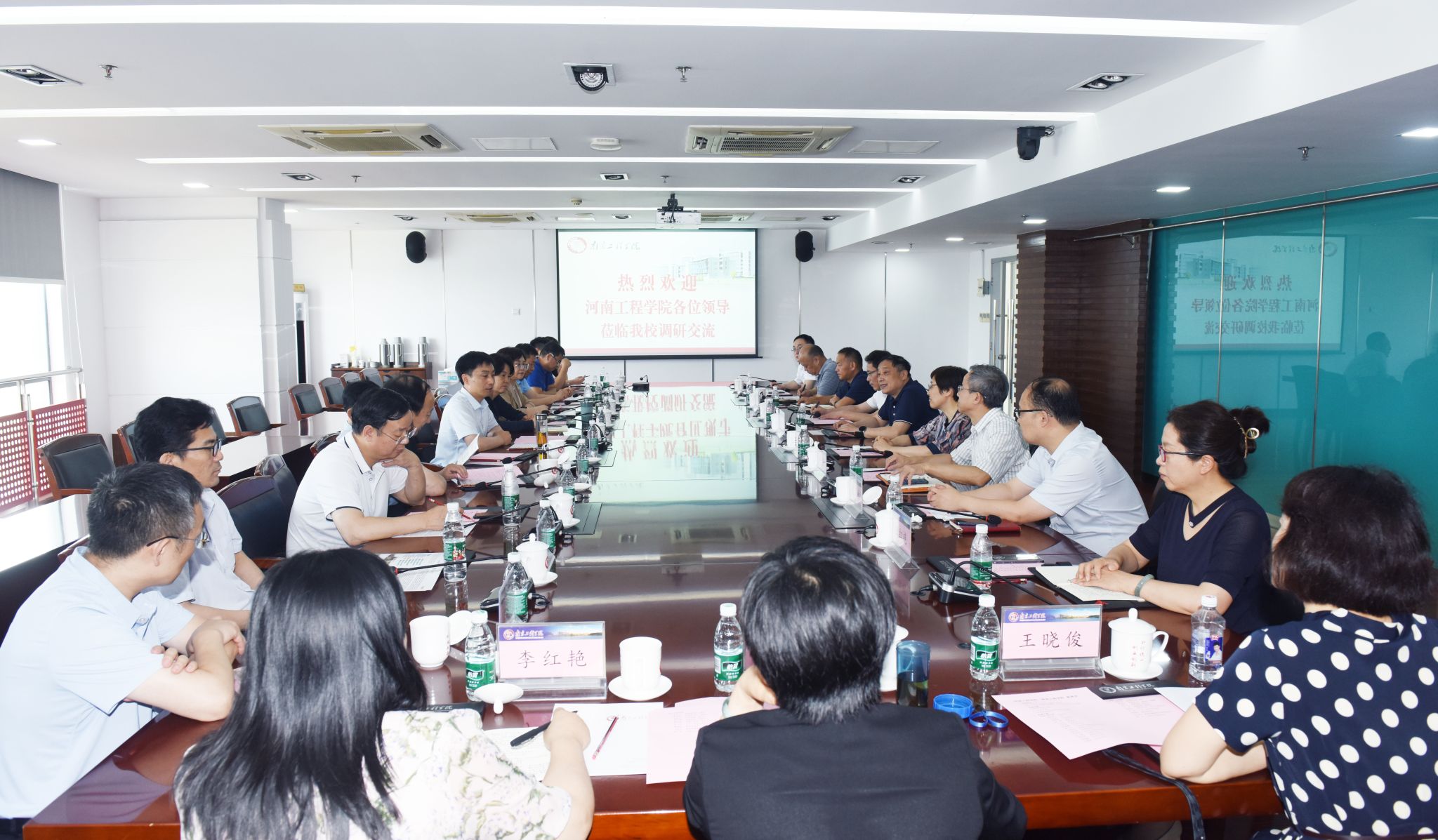 7月6日下午,河南工程学院党委书记刘永涛、校长李利英带队来校走访交流。永利官网党委副书记、院长史金飞在至勤楼·行政中心北303会议室热情接待了来宾。党委副书记、副院长曹雪虹,党委常委、副院长张仰飞、郑锋及相关职能部门负责人参加座谈会。