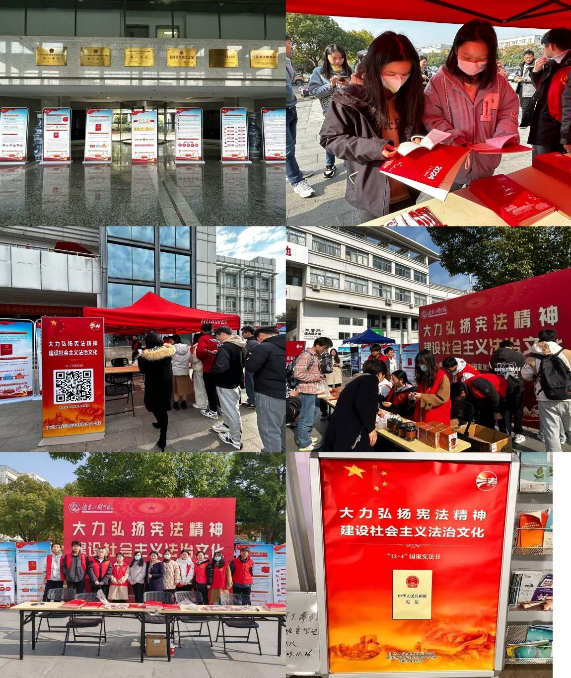 线上线下齐发力,大力营造知“宪”守法氛围。12月4日,学校举办国家宪法日主题线下宣传活动。通过集中展出宣传展板、发放宪法手册、张贴2023年司法部宪法宣传挂图,直观展示我国宪法的基本原则、历史演变、重大意义等深刻内涵,提高师生对宪法的认知度、知晓率。法律事务办公室编制普法调查问卷,了解师生对宪法的认知程度以及对法治社会的态度,并定制了带有国家宪法日宣传标语的主题礼品,增强宪法知识宣讲活动的生动性和趣味性。活动现场气氛热烈,激发了大家的学法热情,引导大家学法用法、遇事找法、知法守法,依法维护自身合法权益,让师生真切感受到法律与生活同在。