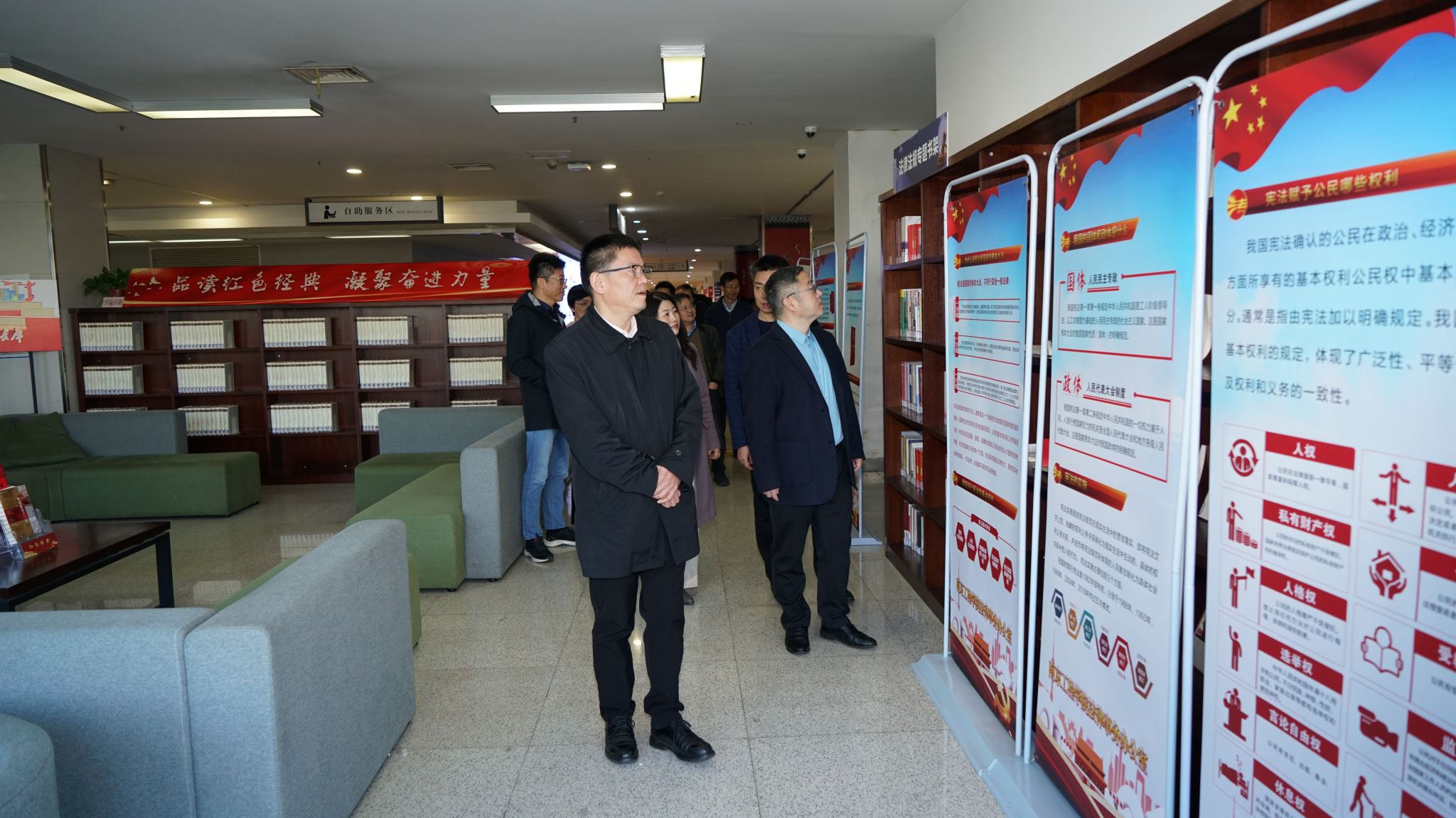 以书为伴法为友,宪法学习进行时。学校还举办主题为“法之所向,书之所记”法律法规专题图书展活动,推荐宪法理论、宪法案例、实用法律常识等法律法规书籍200余种,并制作宪法知识宣传海报,于图书馆休闲阅读区供师生阅读。校领导濮励杰、包永强也来到书展活动现场观摩,与师生深入交流,号召更多师生学习法律知识,品读法律之美。