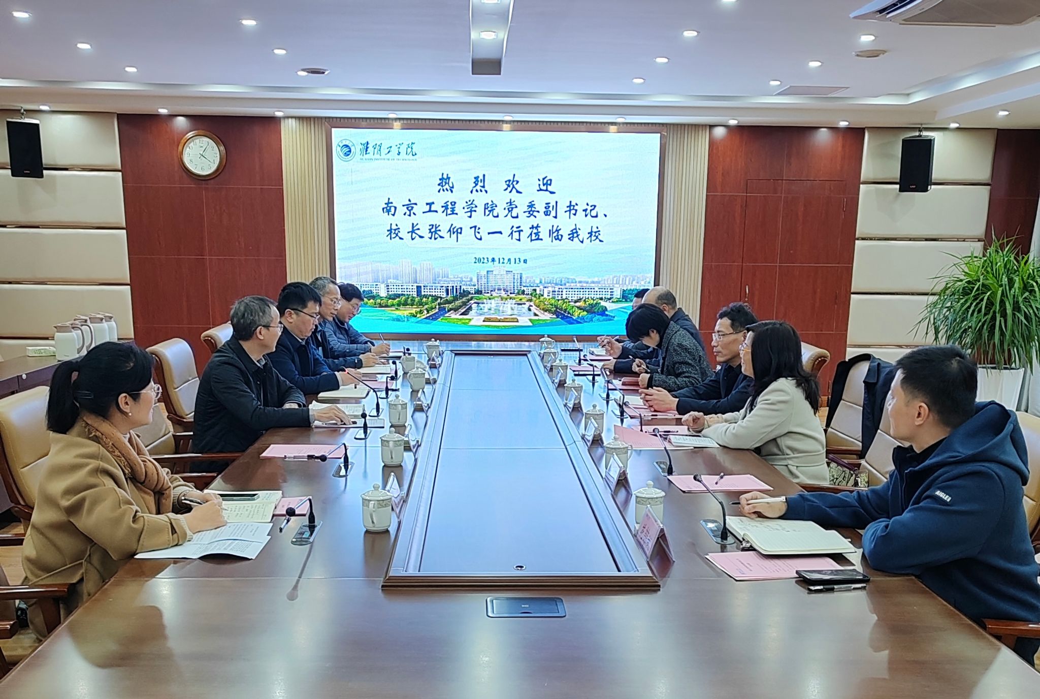 深化合作促发展,携手共进向未来。为贯彻落实第四次党代会决策部署,学习先进经验,开拓创新思路,推动一流应用型大学“登峰计划”顺利实施,12月13日下午,永利官网党委副书记、校长张仰飞,党委常委、副校长汪群,党委常委、人事处处长张焱等一行到淮阴工学院调研交流,受到淮阴工学院党委副书记、校长郑锋的热情接待。
