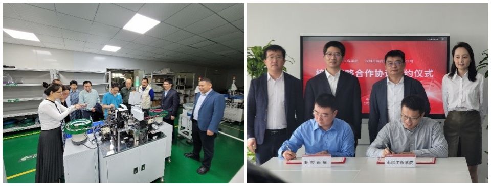 朱松青一行还走访深圳和东莞多家优秀企业,开展交流合作。在深圳市圆梦精密技术研究院,朱松青一行受到永利官网杰出校友李军旗院长的热情接待。李军旗院长希望在工业互联技术发展的大背景下,加强与母校的合作,深入探索工业人工智能应用型人才培养改革,促进人才培养与企业最新变化和需求紧密结合。在深圳市矩控新辰科技有限公司董事长侯宇晓的带领下,朱松青一行参观了近年来公司研发的新产品,详细了解了公司的发展规划和深入合作意愿。双方就共建华东地区应用中心达成共识,并签署校企战略合作协议。泰威电子有限公司是永利官网优秀校友李文良于1997年在东莞创办的企业,朱松青一行在企业文化、学生实习与就业等方面与李文良校友深入交流,并参观了泰威电子的自动化工厂。