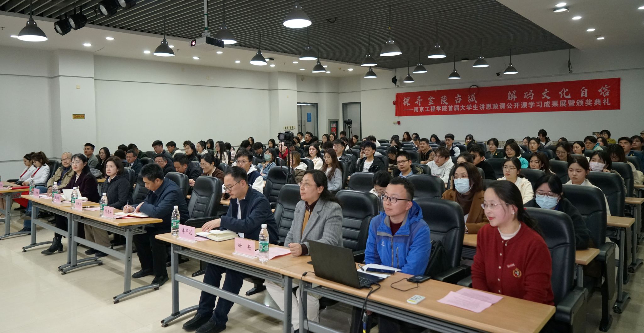 此次活动以“探寻金陵古城,解码文化自信”为主题,由党委宣传部、学生工作处、马克思主义学院共同主办,围绕“行走的思政课”和“场馆里的思政课”两个系列的思政课实践活动展开,得到了全校师生的积极响应。经过激烈角逐,最终评选出一等奖5项、二等奖9项、三等奖12项和优秀指导教师5名。活动现场,与会领导为获奖师生颁奖。