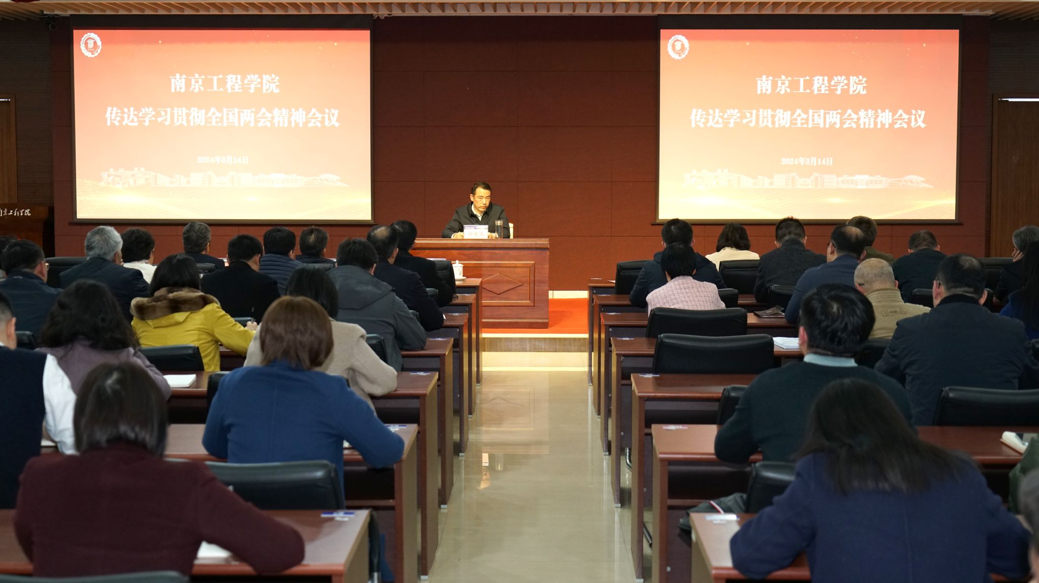 会上,孙爱武传达学习了省委省政府学习贯彻全国两会精神会议的内容要求,并做出工作部署。他指出,习近平总书记亲临江苏代表团参加审议并发表重要讲话,既是给我们指方向、下任务、定目标,又是给我们提要求、教方法、鼓干劲。要深入学习贯彻习近平总书记在江苏代表团审议时的重要讲话和全国两会精神,深刻理解和把握总书记对江苏工作的重视关心,深刻理解和把握总书记对江苏工作的重大要求,深刻理解和把握总书记对江苏提出的重大任务,深刻理解和把握总书记关心关注的重大事项。他要求,要全面抓好学习宣传和贯彻工作,大力弘扬真抓实干的优良作风,更好地统筹发展和安全,确保实现全年目标任务。孙爱武号召全校师生坚定信心、鼓足干劲、勇挑大梁,更加扎实有效做好当前各项工作,推进江苏省一流应用型本科高校建设,推进国内领先、特色鲜明的一流应用型大学建设,为中国式现代化江苏新实践贡献南工程力量。
